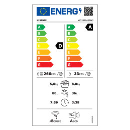 Consumo de energía lavado + secado kw cada 100 ciclos: 266